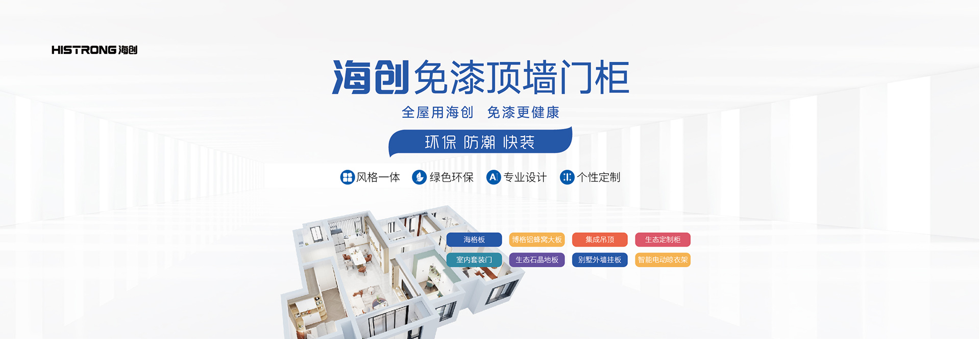 海創,專注免漆頂墻門柜風格美學研究,開創了中國免漆頂墻門柜系統。以『全屋用海創,免漆更健康』的家裝訴求、以『空間有界,生活無限』的品牌理念致力于為消費者量身定制舒適、環保、獨具品味的個性化美學空間生活。